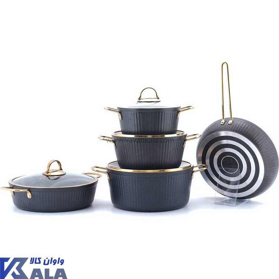 این سرویس شامل 3 عدد قابلمه در سایز های 20 – 24 – 28 ٬ سایز تابه تک دسته 28 سانتیمتر و سایز تابه دو دسته ٬ 28 سانتیمتر می باشد