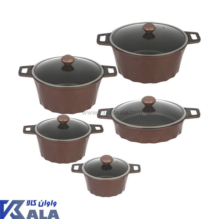 بدنهی ظروف از آلومینیوم دایکست مقاوم ساخته شده و روکش داخلی آنها از گرانیت نچسب است که علاوه بر جلوگیری از چسبیدن غذا، شستوشو را سریع و راحت میسازد. دربهای استیل-شیشهای با دستگیرههای باکالیت نسوز طراحی شدهاند که علاوه بر زیبایی، ایمنی بالایی هنگام پختوپز ایجاد میکنند.