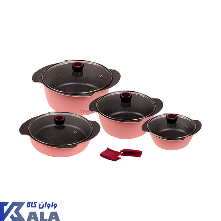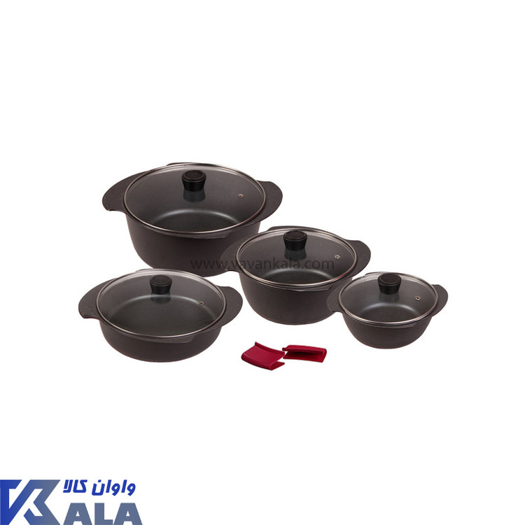 سرویس پخت و پز 10 پارچهی تکنو مدل پروانه شامل سه قابلمه سایز 20،24،28 و یک تابه دو دسته سایز 28 و یک جفت دستگیره سیلیکونی است. پوشش درونی تابه ها و قابلمه ها از گرانیت نچسب و پوشش بیرونی آن رنگ پودری الکترواستاتیک می باشد. این ست بدنهای یکتکه دارد و دستهها بهشکل پروانه، کاملا وصل به بدنه هستند. بدنهی داخلی این سرویس خاکستری رنگ است و تفکیک رنگی آن براساس بدنهی خارجی صورت میگیرد. کفی تمام ظروف ضخیم است و انتقال حرارت بهصورت کاملا یکنواخت انجام میشود؛ درنتیجه مواد غذایی یکدست پخته میشوند. درپوشهای این ست از شیشه هستند و با رینگ استیل پوشیده شدهاند و برای خروج بخار از ظروف یک سوپاپ ریز روی آنها تعبیه شده است. یک جفت دستگیرهی سیلیکونی نیز در این سرویس دارید که برای جابهجایی ظروف قابلاستفاده است. برای اینکه سطح داخلی ظروف شما برای مدتهای طولانی سالم و بدون خش بماند، تلاش کنید که همیشه از ابزارهای آشپزی مناسب برای این ظروف استفاده کنید.